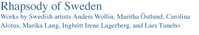 April 22 - May 20, 2006 Schomburg Gallery presents "Rhapsody of Sweden" featuring forty-four works by Swedish artists Anders Wollin, Maritha Östlund, Carolina Alotus, Marika Lang, Ingbritt Irene Lagerberg, and Lars Tunebo. Click on the "View Works" link below to view a selection of paintings in the show.
