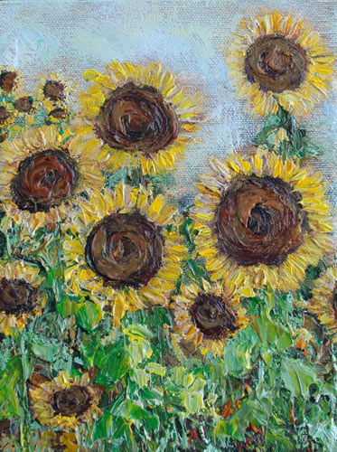 Sunflower Side Show 8 x 6 inches Acrylic on Canvas, Mixed Media $300