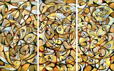 Under the Sea Tryptich 69 x 37 inches each Oil on canvas $18,000
