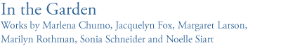 June 13 – August 13, 2009 Schomburg Gallery is pleased to present "In the Garden," featuring paintings by Marlena Chumo, Jacquelyn Fox, Margaret Larson, Marilyn Rothman, Sonia Schneider and Noelle Siart .