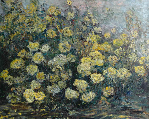 Yellow Roses 24 x 30 inches Acrylic on Canvas, Mixed Media $1800