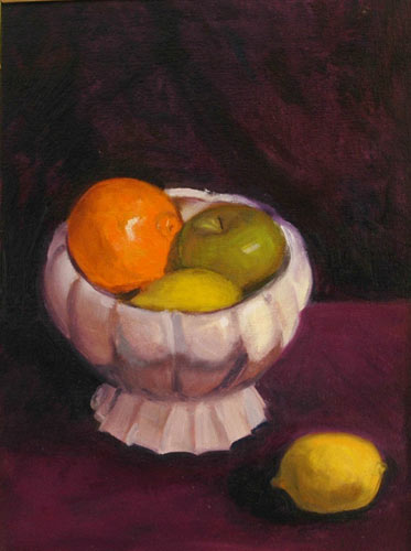 Mixed Fruit in a White Bowl 16 x 12 inches Oil on Canvas $400