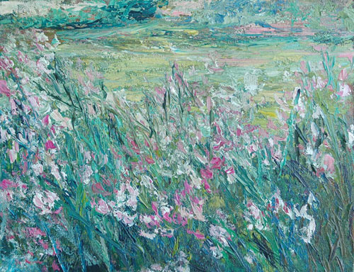 Pink and White 9 x 12 inches Acrylic on Canvas, Mixed Media $325