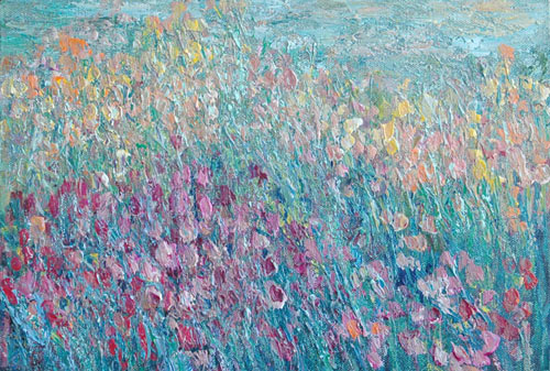 Spring Tulips 8 x 12 inches Acrylic on Canvas, Mixed Media $325