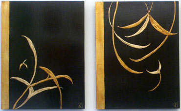 Love's Leap 21 x 30 inches (diptych) Acrylic & Metal Leaf on Panel $2000