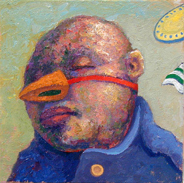 Fat Man with Fake Beak Nose 16 x 16 inches Oil on Canvas $2800