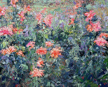 Dahlias, Monet's Garden 24 x 30 inches Acrylic on Canvas $1600 SOLD