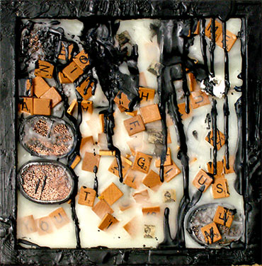 Me You Us 12 x 12 x 12.5 inches Scrabble letters, encaustic on drawer 2006 $1,500