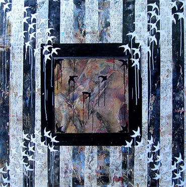 The Race 60 x 60 x 3.5 inches Collage, encaustic, paint on board w/insert 2006 $10,500