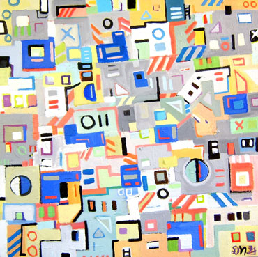 Bauhaus Suburbs 36 x 36 inches Acrylic & glass beads on canvas $2800