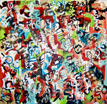 Calligraphic Spring 36 x 37 inches Acrylic & collage on canvas $2800