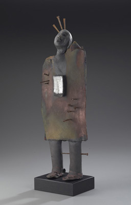 PRIMAL SPIRIT nkisi nail fetish 17" x 6" ceramic with steel nails, Raku fired $1200
