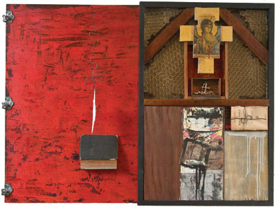 Magic 30 x 60 inches(open) Acrylic, ink, wood, feather, bible, rosary, ribbon, wire, fabric, photos $5000