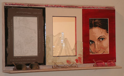 Reflections 11.5 x 24 x 2.5 inches Wood, mirror, eyeglasses, glass, acrylic, crayon, pencil $1500